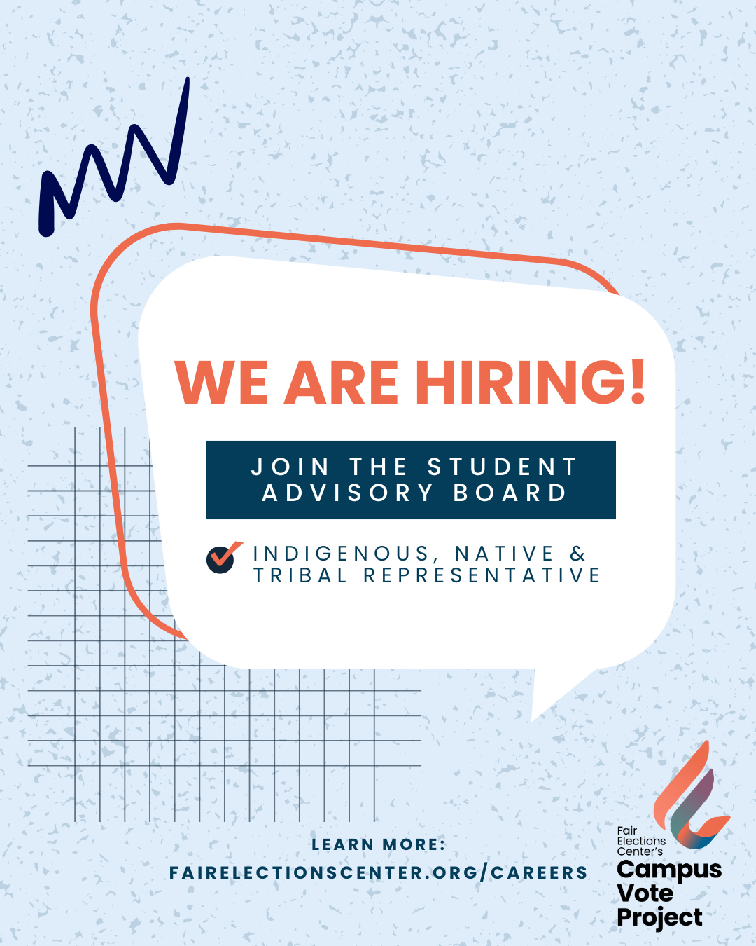 Fair Elections Center`s Campus Vote Project is looking for civically minded Indigenous, Native, & Tribal students to join our Student Advisory Board!
