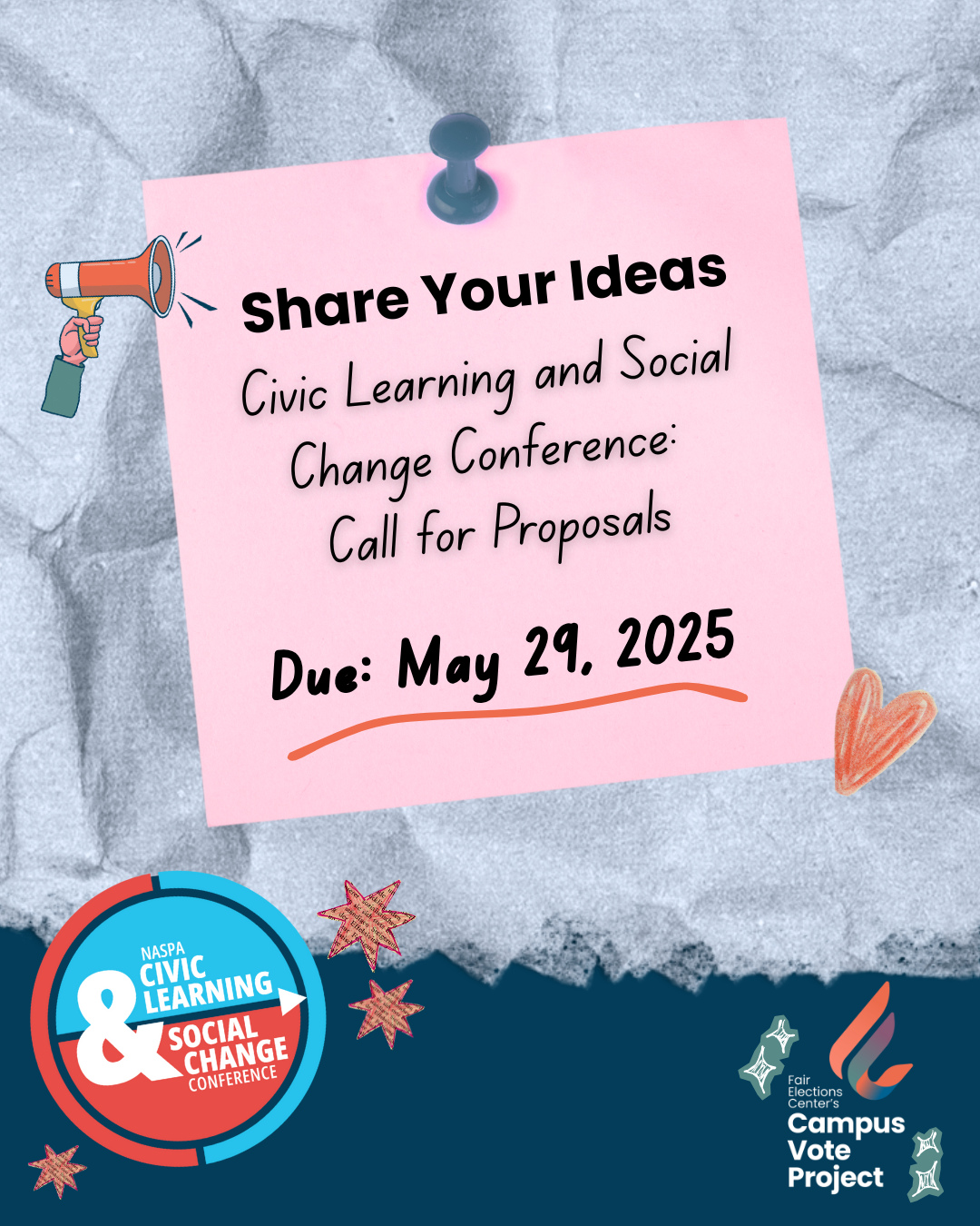 Submit your proposal before May 29th for consideration. Learn more: naspa.org/events/civic-learning-and-social-change-conference (link in bio)