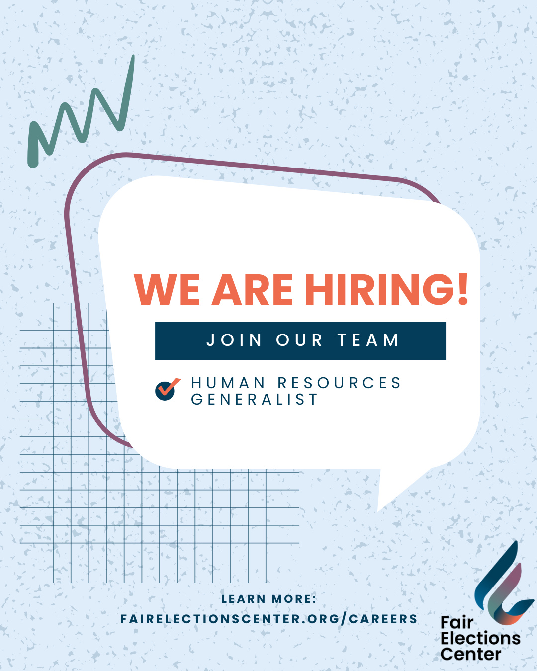 Fair Elections Center is looking to hire a full-time Human Resources Generalist. Head to the link in our bio (fairelectionscenter.org/careers) for more information and apply today!