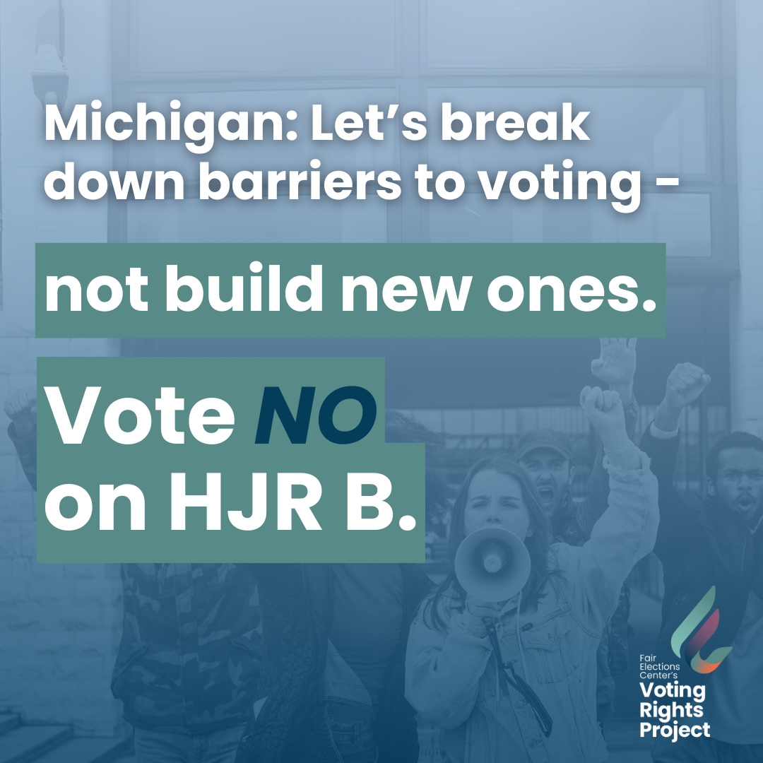 House Joint Resolution B’s unnecessary and burdensome requirements would prevent tens of thousands of American citizens from voting. Learn more at promotethevotemi.com/hjrb (link in bio). #NoOnHJRB