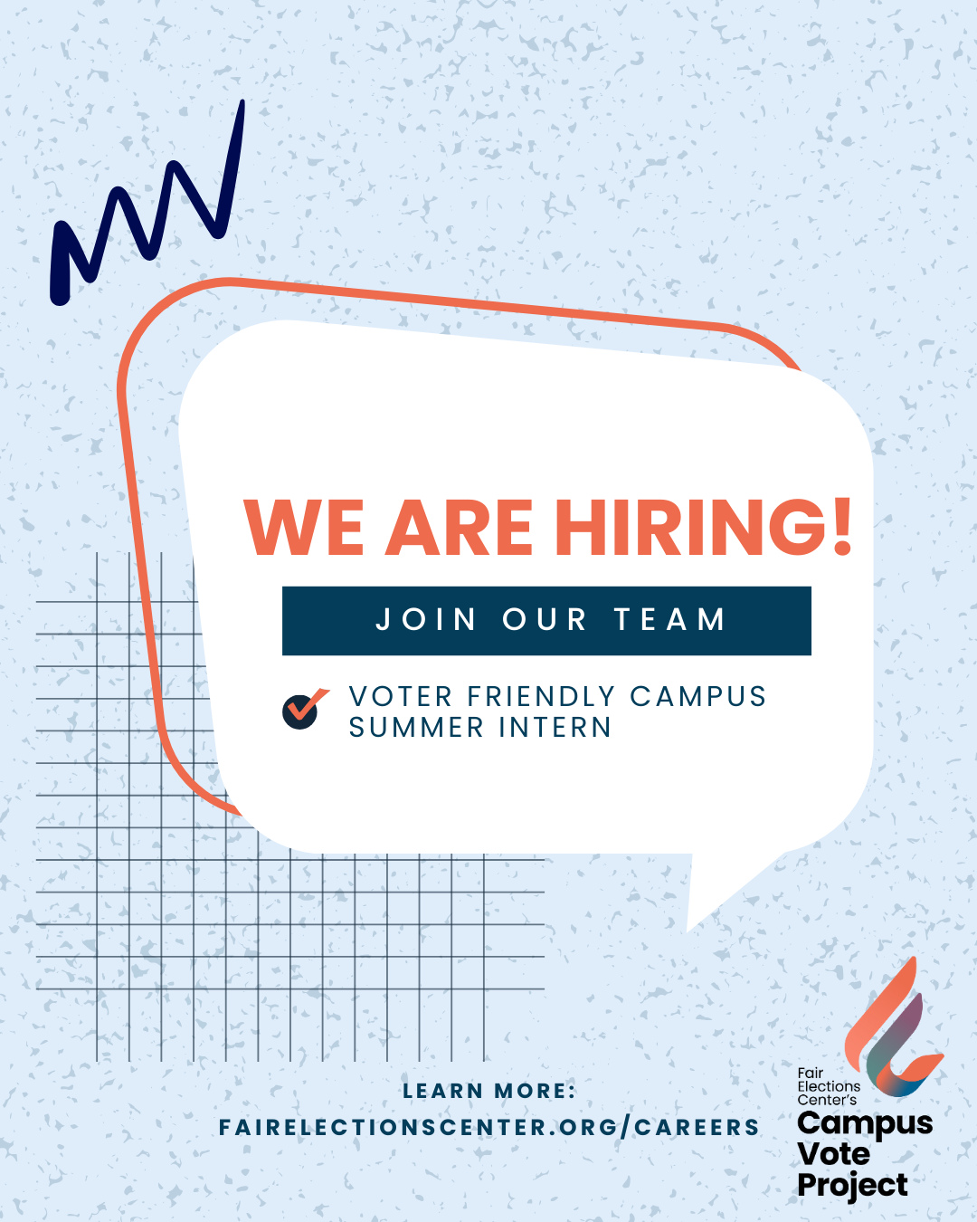 Are you a civically engaged student ready to make a difference on a national level? Apply to be the next Voter Friendly Campus Summer Intern with Fair Elections Center`s Campus Vote Project!