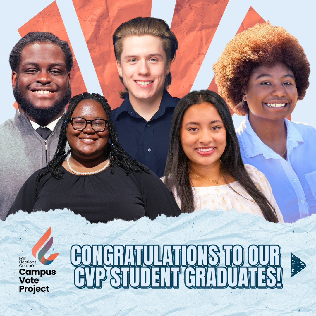 Thank you to all the graduating Democracy Fellows, Student Advisory Board Representatives, and interns that shared their college journey with Campus Vote Project! We are so proud of all the work that you`ve done on and off campus — now its time to use the skills you`ve learned to change the world!